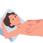 Place a pillow under your shoulder. Use your opposite hand to check the breast, pressing lightly then firmly.